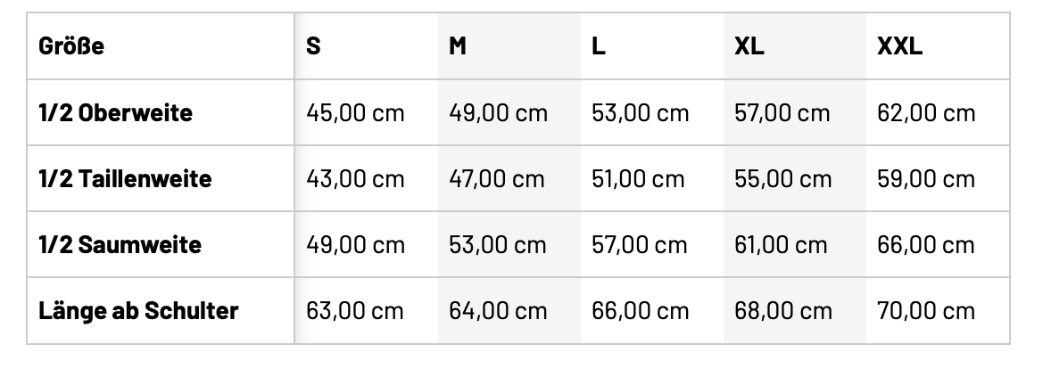 Größentabelle