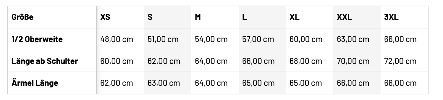Größentabelle
