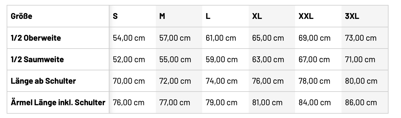 Größentabelle