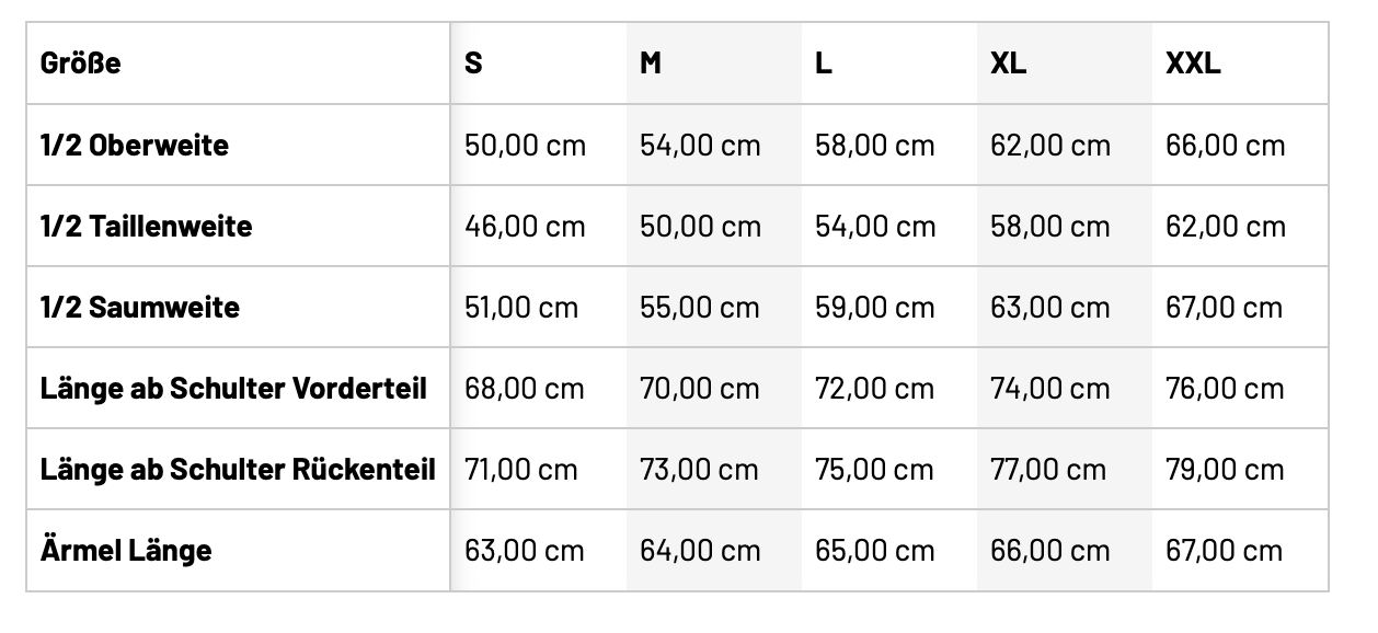 Größentabelle